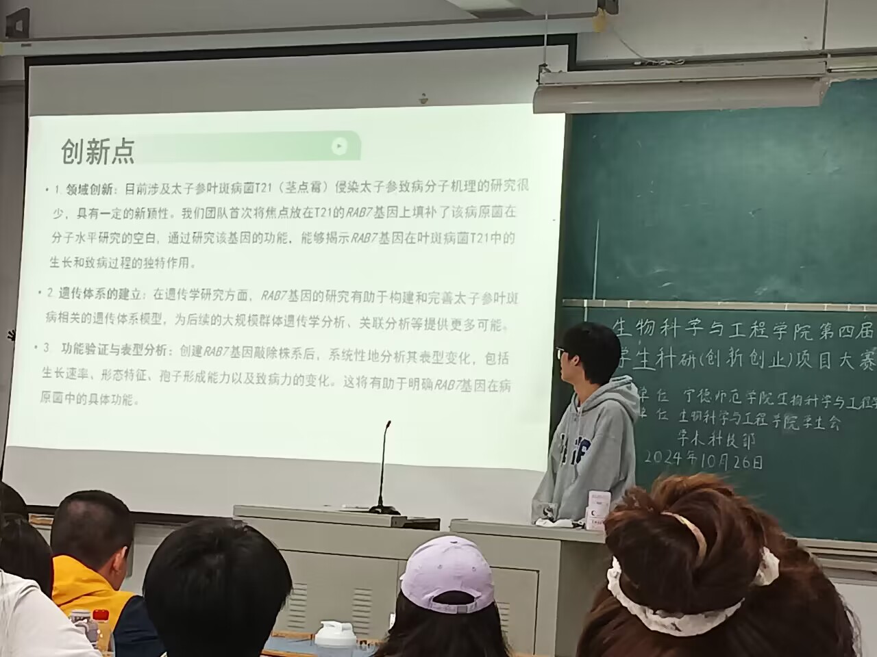 此次竞赛吸引了众多生工院学子踊跃参与,他们怀揣着对科研的热情与梦想,齐聚一堂。竞赛现场气氛热烈而紧张,一个个参赛团队依次登场,他们以扎实的专业知识和创新的思维,展示着各自精心筹备的科研项目。