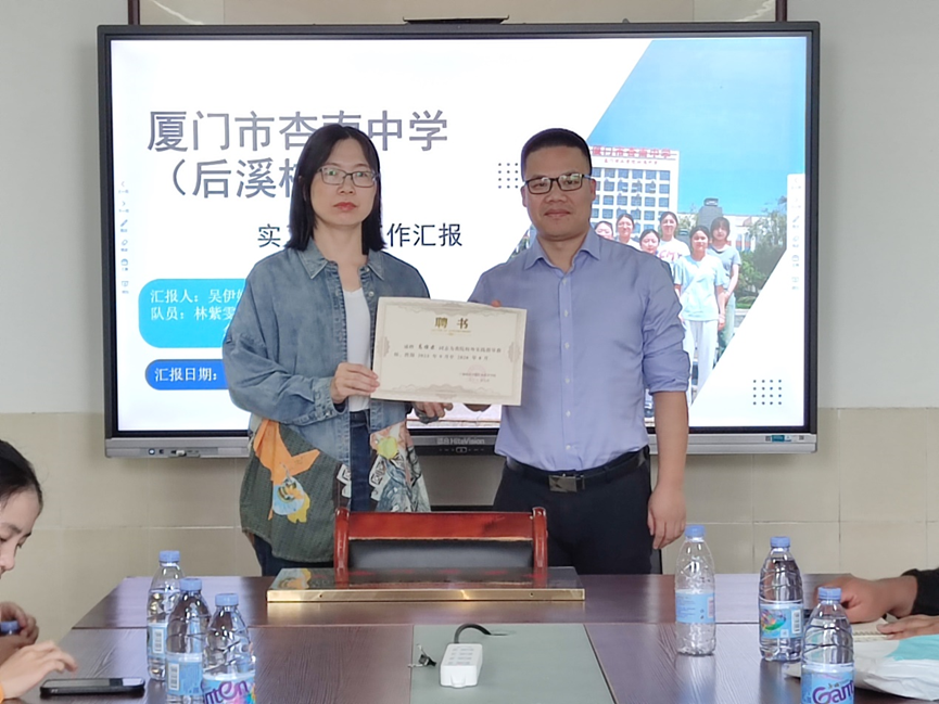 为切实推动英国365集团教育实习工作稳步推进,进一步巩固英国365集团与厦门市杏南中学的友好合作关系,2024 年 11 月 22 日,英国365集团杨克润副院长、林雄平老师、史辉老师赴厦门市杏南中学看望和慰问实习生。此行旨在深入了解实习学校教学管理、实习规划及教研活动开展状况,并举行英国365集团教学实践基地授牌仪式与指导教师聘任仪式。杏南中学教务科主任程春晖老师、生物组教研组组长高雅君老师、高一组生物教师陈艳梅老师及生物实习老师吴伊娜、林紫雯、余婉丽、陈毓娴、林诗琪、陈思晨等热情相迎,汇报了在杏南中学的实习工作详情。