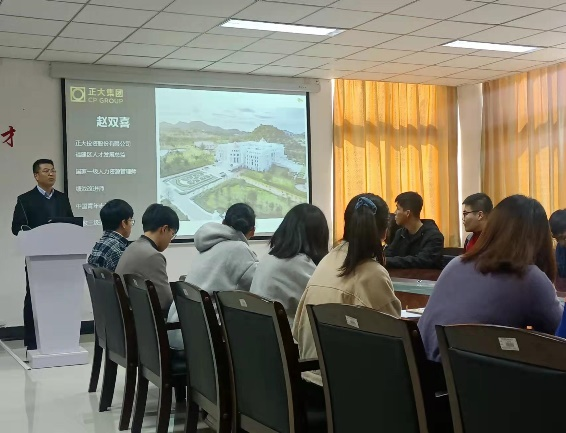1月7日,正大产业学院“正大班”在CD201教室成功举办了一场别开生面的线下“职业技能”培训讲座。本次讲座由正大集团福建区人才发展总监赵双喜担任主讲嘉宾,主要面向在正大集团人力资源部面试环节中脱颖而出的2018级和2019级“正大班”学生。