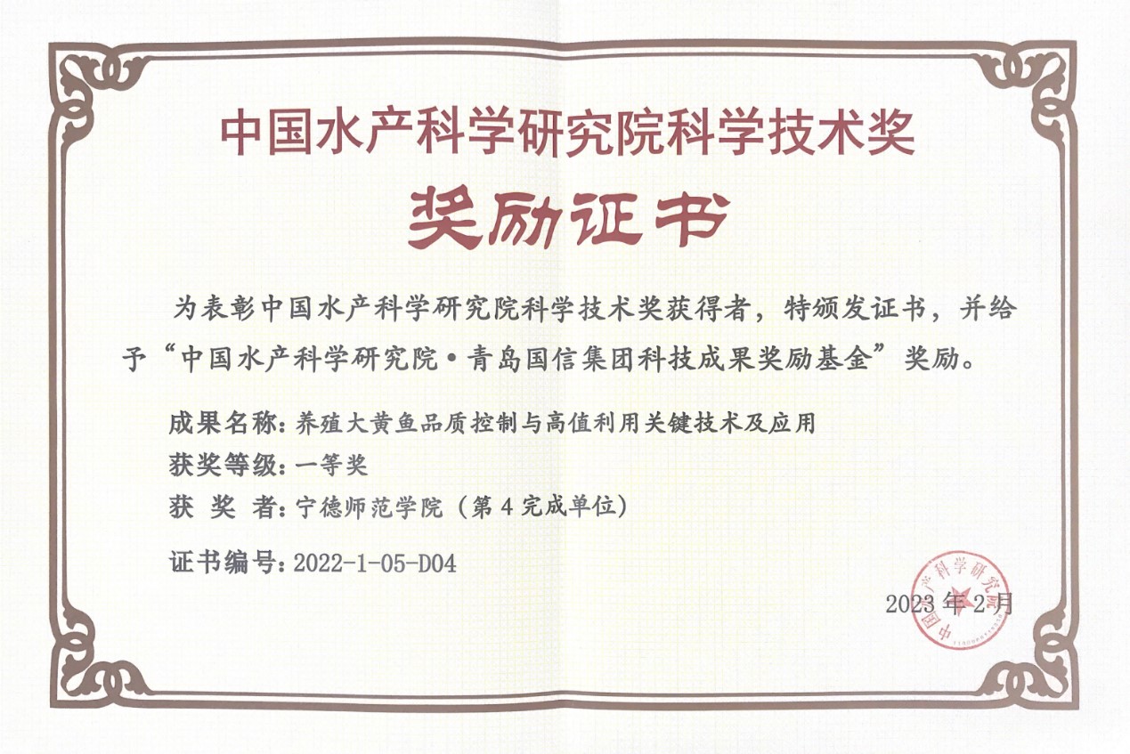 2023年2月14日,中国水产科学研究院公布了2022年度科学技术奖获奖项目,其中由英国365集团特聘教授海洋渔业振兴学院副院长郭全友研究员主持完成的《养殖大黄鱼品质控制与高值利用关键技术及应用》项目荣获中国水产科学研究院科学技术一等奖。本成果针对大黄鱼原料品质差异大、冷链贮销衔接差、高值利用率低等关键问题,围绕大黄鱼“质量分级→冷链贮运→高值利用”的研发路径,开展其原料品质和致腐机制等基础研究,冷链物流与鲜度预测、靶向控菌和高效发酵、副产物生物提取与综合利用等技术装备研发及集成,制定原料鱼质量等级和高值化利用等标准体系,研制预制菜和香糟鱼等新品,该成果已被福建与浙江地区的多家企业应用,取得了显著的经济、生态和社会效益。