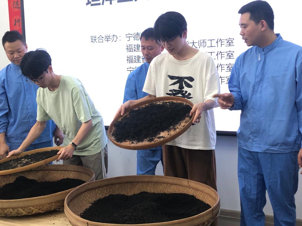 为深化实践教学效果,活动特别设置精制工艺实操体验环节。在黄先洲、郑国华、陈辉煌、刘小春四位技能大师的现场指导下,参与师生亲手操作圆筛、抖筛、扬簸等工序,细致感受各环节的技术要点与操作规范,切实体会传统制茶工艺的精细与考究。