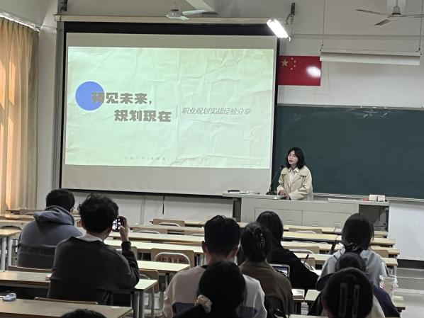 为帮助同学们明确未来方向,翁晓颖梳理了多元职业路径——既可以深耕教学领域,成长为骨干教师;也可以通过统招或紧缺急需人才招聘渠道考研,转向科研领域;还能选择私立学校、教育机构或医药行业就业。此外,她还详细介绍了招聘信息的获取渠道,如宁德市教育局官网、学校官网及“大梦蕉城”等权威公众号。针对有意向考研的同学,她从目标确定、资料准备、计划制定三方面提供指导;对于求职面试,她分享了“前期模拟打磨、过程自信展优势、后期跟进查结果”的实战经验。最后,她以“越往前走越难,越难越往前走”的信念收尾,传递出青年教师积极向上的担当精神。